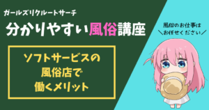 ヘルスサービスにハードルの高さを感じる子は、まずソフトサービスの風俗で働いてみるのが良いかもね。